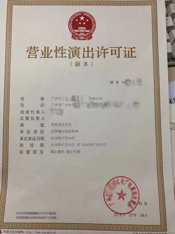 注意:之前公司股權(quán)里有外資成份的是無(wú)法申請(qǐng),不過(guò)目前可以申請(qǐng)了,有外資也可以申請(qǐng)營(yíng)業(yè)性演出許可證,有需要私信我!